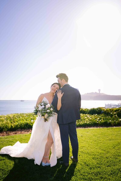 The ceremony overlooking the sparkling coastline was both intimate and grand. As they exchanged vows, the ocean shimmered behind them, guests cheered with full hearts, and the sun dipped lower, filling the sky with gold.