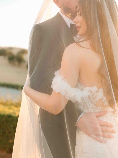 As the sun set, Ruby Hill transformed into a warm, glowing canvas. We wandered through the grounds capturing intimate portraits surrounded by vineyards, cypress trees, and the iconic Mediterranean-inspired architecture. The Club at Ruby Hill is truly one of the East Bay’s most luxurious wedding venues, offering both grandeur and quiet romantic corners perfect for storytelling imagery.